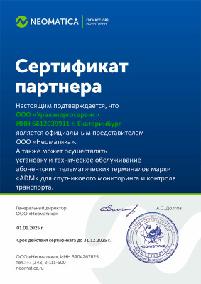 Наши сотрудники являются сертифицированными специалистами по системам спутникового мониторинга Wialon Hosting и ГЛОНАСССофт, что позволяет внедрять у своих Клиентов практически любые сценарии контроля транспорта и оптимизации использования транспортного парка. К тому же мы всегда рады оказать нашим клиентам консультацию как в онлайн режиме, так и в наших офисах, расположенных в г. Екатеринбург и Каменск-Уральский.